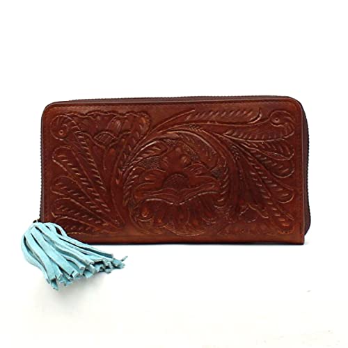 ARIAT Clutch Wallet Claire Collection Tooled Turquoise Fringe Tan