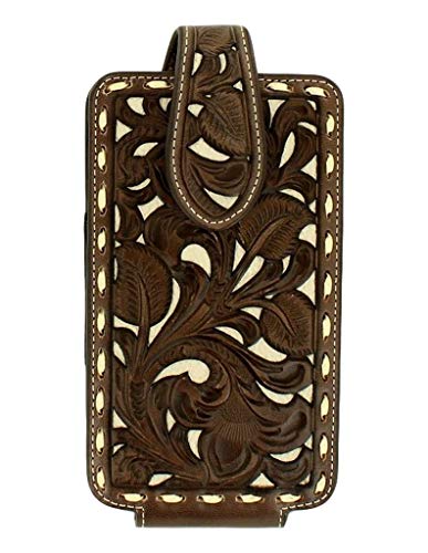 Nocona Belt Co. Unisex Floral Pierced Laced Edge Large Cell Phone Case Holder Tan One Size