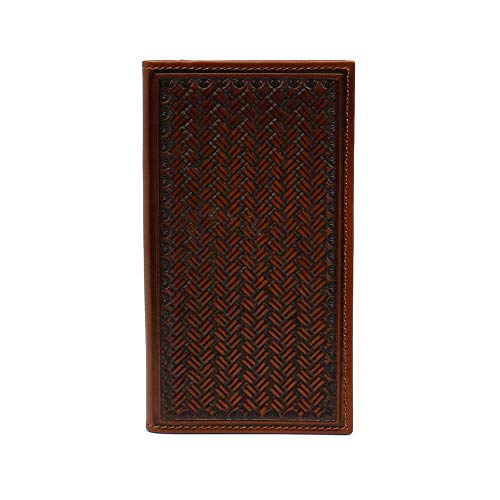 M&F Western DW784 3D Chocolate Basket Weave Wallets with Contrast Hatsched