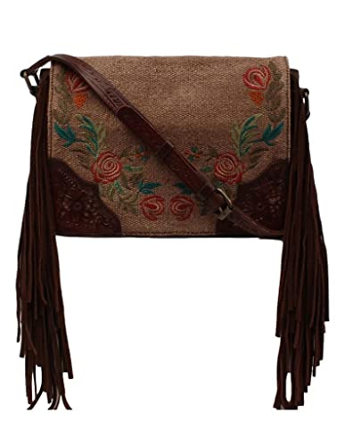 Ariat Women's Audrey Collection Canvas Flower Fringe Brown Crossbody Bag