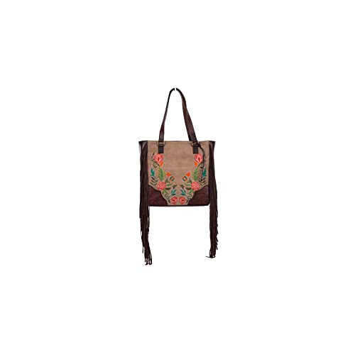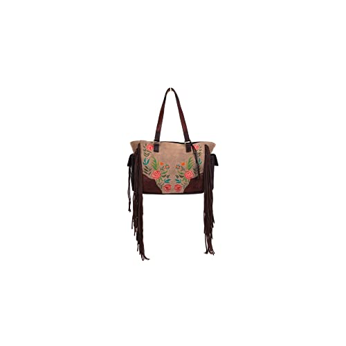 Ariat Women's Tote Satchel Audrey Collection Canvas Flower Fringe Brown