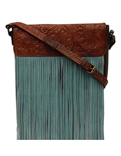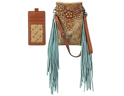 Ariat Women's Claire Collection Tooled Turquoise Fringe Tan Crossbody Bag